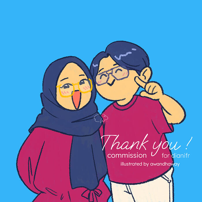 Mohon cantumkan kredit dengan mencantumkan link (tautan) atau tag @awandhaway (@_awandhaway khusus untuk Instagram) apabila mengunggah karya komisi pada platform pribadi Anda.